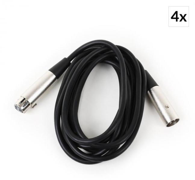 Négy hárompólusú, 3 méter hosszúságú XLR kábelből álló készlet, male female-re minőségi konnektorokkal. Például mikrofon és hangfal csatlakoztatására.