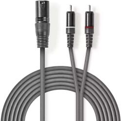 Nedis XLR 3-Tűs Dugasz, RCA Dugasz x2, PVC, nikkelezett, szimmetrikus audió kábel, 1.5m, sötét szürke (COTH15200GY15) (COTH15200GY15)