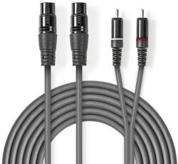 Nedis COTH15230GY30 félprofi audio kábel, 2x XLR aljzat - 2x RCA dugó, 3m