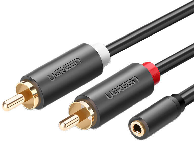 UGREEN AV102 Jack 3, 5 mm-es anya - 2x RCA apa kábel 0.25m fekete (10561) (UG10561) (UG10561)