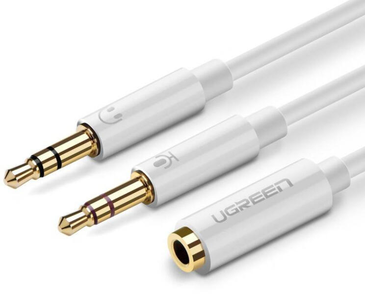 • 1 db UGREEN AV140 audio elosztó, AUX fejhallgató + mikrofon 3,5 mm-es mini jack kábel (28 cm, fehér)